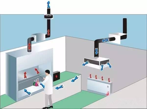 化學實驗室通風櫥安裝位置有以下要求:通風櫥應放在實驗室前墻的一端或實驗室后墻、靠近內縱墻的位置。排風口應設置在室內空氣流動區,且排風口的高度應高于3米。排風罩有側吸罩、頂吸罩、下吸罩三種,根據實際情況進行選擇。